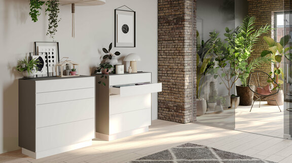 Chez raumplus, chaque produit est unique. Même pour nos meubles solitaires et nos commodes sur mesure, nous fabriquons tout individuellement selon les souhaits du client. Les commodes et les sideboards sont les petits miracles en matière de rangement.