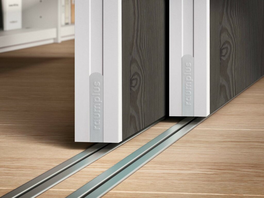 La porte coulissante guidée au sol est uniquement guidée dans le rail de sol. Il n’y a donc pas de charge suspendue au plafond. Ce type de construction permet également le montage sous des plafonds légers. Le poids de la porte (180 kg maximum par porte) repose sur le rail au sol ou sur les roulements. Ces roulements fonctionnent toujours facilement, même en cas de forte charge. Les critères de qualité très stricts de raumplus en sont la garantie. Ceux-ci sont contrôlés en permanence pour les roulements comme pour les autres composants et testés dans notre stand d’essai.
